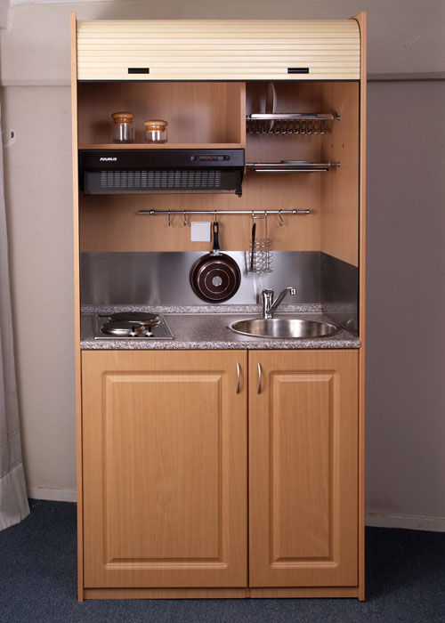 Mini-kitchen is available in 2 dimensions (125 x 204 x 65cm or 105 x 204 x 65cm) and additional extra cupboards (65 x 204 x 65cm , 55 x 204 x 65cm and 45 x 204 x 65cm ).
