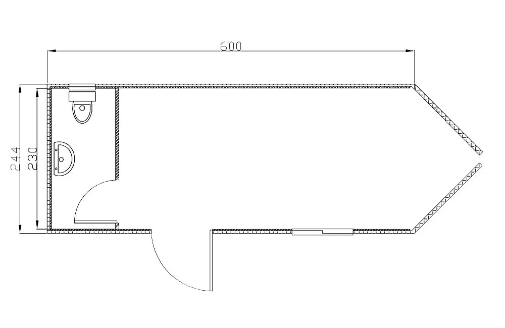 M – 20C – P25 – T Modified 20ft container. Office with toilet, insulated with 25mm polyurethane panels, electrical installation, PVC floor and aluminum doors and windows.