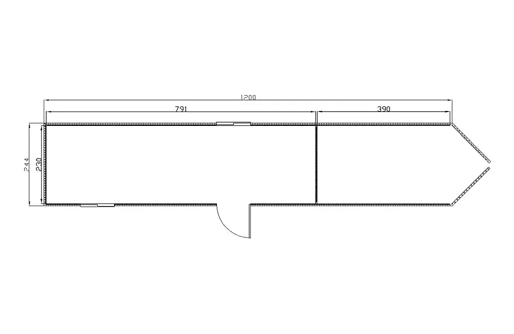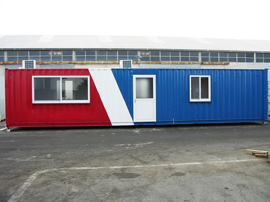 M – 40C – P25 – T – S Modified 40ft container. Office with toilet and shower, insulated with 25mm polyurethane panels, electrical installation, PVC floor and aluminum doors and windows.