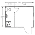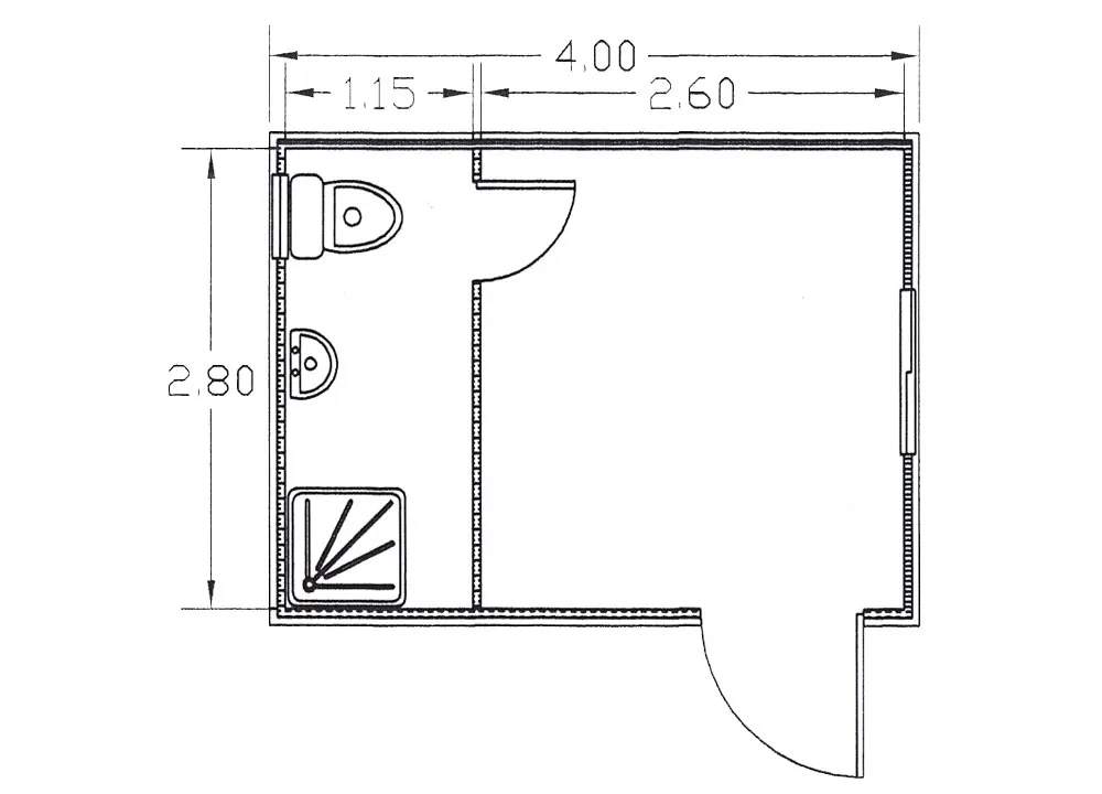 4x3m – TS Prefabricated module 4 X 3 meters. With toilet, hand-wash basin, shower. Electrical installation and aluminium doors and windows.