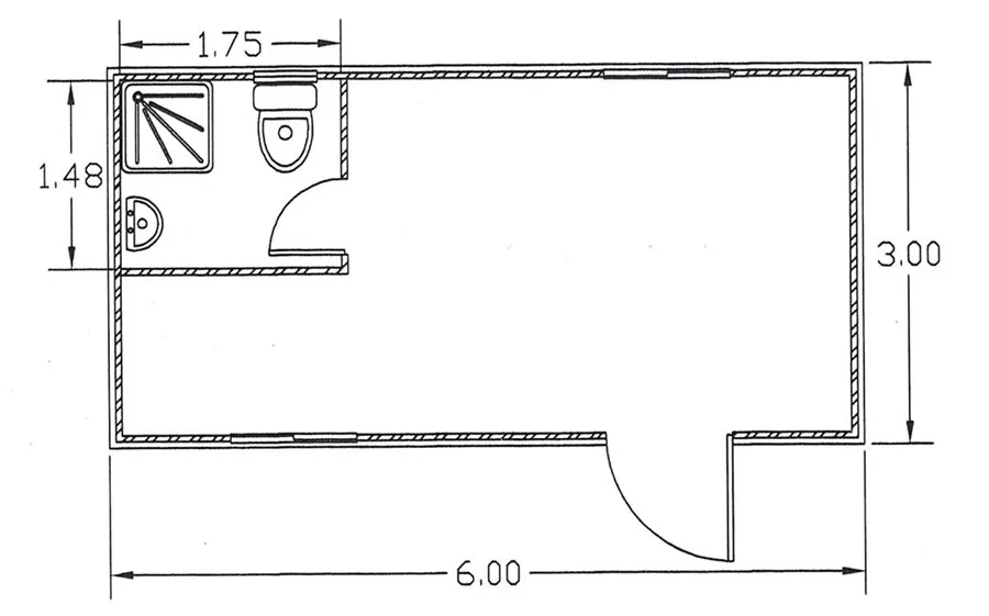 6x3m – T – S Prefabricated module 6 X 3 meters. With toilet, hand-wash basin. Electrical installation and aluminium doors and windows.